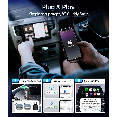 Compatibility: Works with vehicles that already support wired CarPlay or Android Auto.