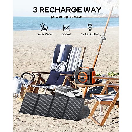 Apowking Solar Powered Generator 300W Rated with Solar Panels 40W Incl, 220Wh Solar Power Bank w/AC Outlet 110V Pure Sine Wave $110.14