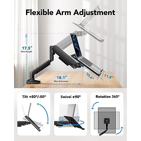 HUANUO 2-in-1 Function Laptop Mount w/ Tray (fits 13-34" monitors & up) $29.99 + Free Shipping w/ Prime or on $35+