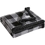50" x 60" Eddie Bauer Soft Reversible Sherpa & Brushed Fleece Throw Blanket (Cabin Plaid Grey) on sale for