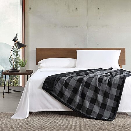 Eddie Bauer Throw Blanket, Yarn Dyed Cotton Bedding w/Solid Ultra-Soft Sherpa Reverse, for Couch & Bed (Cabin Plaid Grey, 50" x 60") $14.3