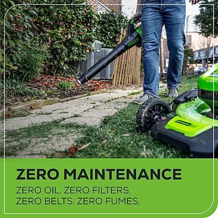 Greenworks 60V 450 CFM Cordless Leaf Blower, 2.0 Ah Battery and Rapid Charger $117