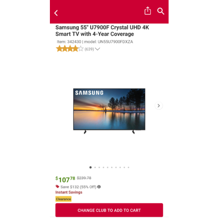 BJ'S WholeSale Samsung TV 55 Inch U7900F Crystal HD With 4Year Warranty $107.78 Store PickUp YMMV