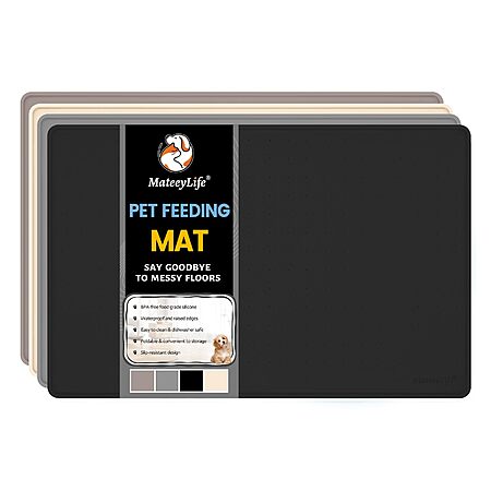 MateeyLife Direct via Amazon [amazon.com] has 18"x12" MateeyLife Waterproof Nonslip Dog/Cat Feeding Mats (Black or Beige) on sale for $9.99 - 50% off when you enter the coupon code Q2OZVICX =$4.99. Shipping is free w/ Prime or on $35+.