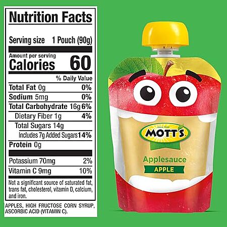Model: Mott's Applesauce, Made from Real Fruit, No Artificial Flavors, Good Source of Vitamin C, 3.2 oz Clear Pouches, 20 Pack