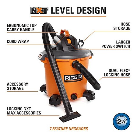 16-Gallon RIDGID 5.0 Peak HP NXT Wet/Dry Shop Vacuum w/ Filter, Locking Hose and Accessories $59.88 + Free Shipping