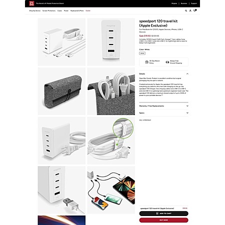 Zagg Speedport 120 4-Port up to 120W Travel Charger Kit for Apple Devices (Open Box) on sale for $19.93 - 20% with promo code