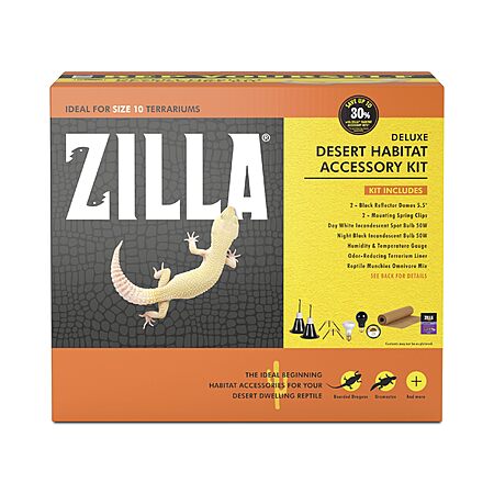Zilla Desert Habitat Accessory Kit, Starter Kit for Reptiles, Easy Start for Desert-Dwelling Reptiles, Includes Lighting, Bedding and Food, Ideal for Size 10G Terrariums $13.6