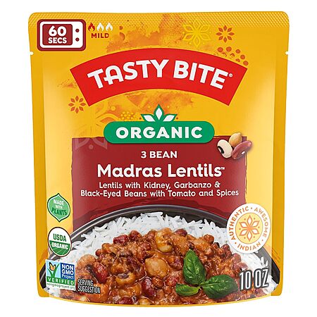 Tasty Bite Organic 3 Bean Madras Lentils, 10 Ounce, Pack of 6, Simmered With Tomato & Spices, Ready to Eat, Microwavable~$15.29 @ Amazon Resale
