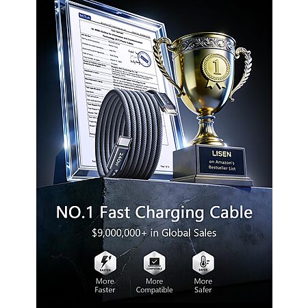 B King via Amazon has 2-Pack 6.6' LISEN 240W USB-C to USB-C Charging Cable on sale for $8.99 - $3.39 off when you enter promo code WMO2UM2U = $5.60. Shipping is free with Prime or on $35+ orders.