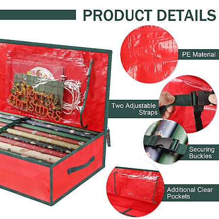 EMOMAS Christmas Gift Wrapping Paper Organizer (Red) - $4.99