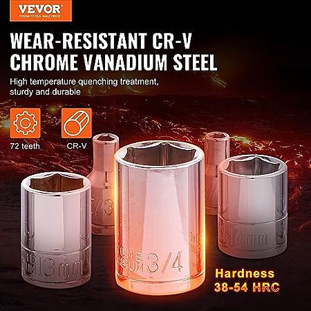 Model: VEVOR Socket Set,Drive Socket and Ratchet Set, 6 Point Socket Opening, 106 Pcs Tool Set SAE and Metric, Deep and Standard Sockets,with Accessories