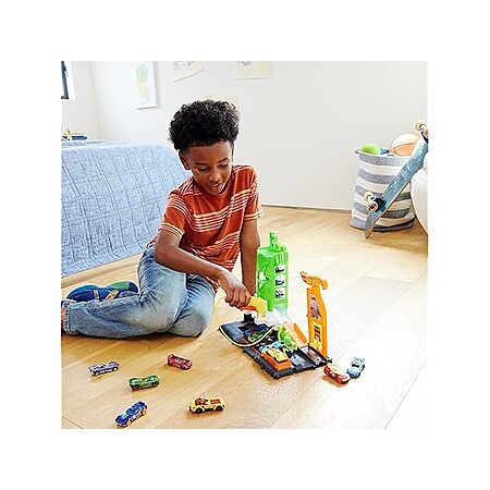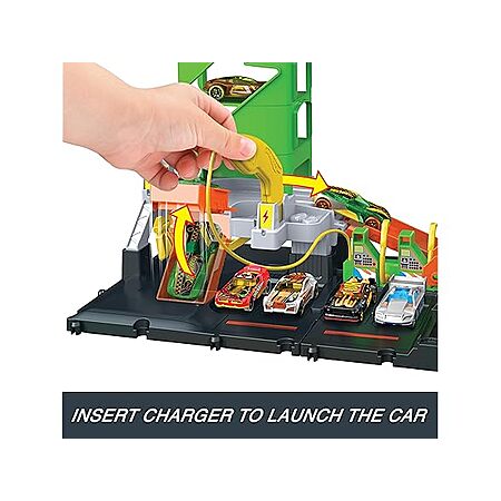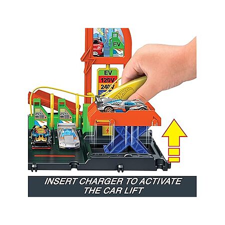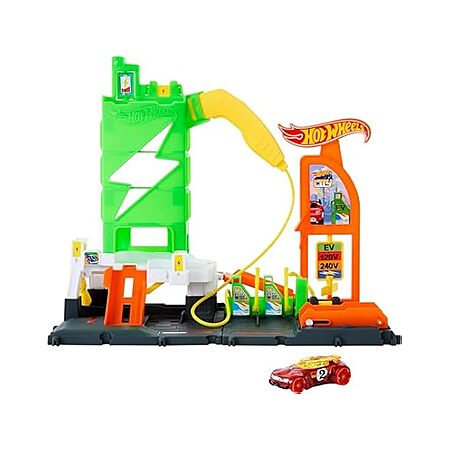 $12.99*:Hot Wheels City Track Set, Super Recharge Fuel Station Playset with EV Chargers & 1:64 Scale Toy Car