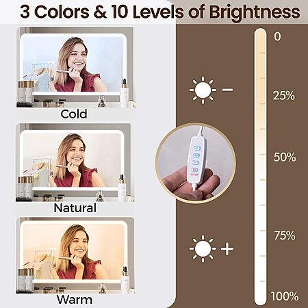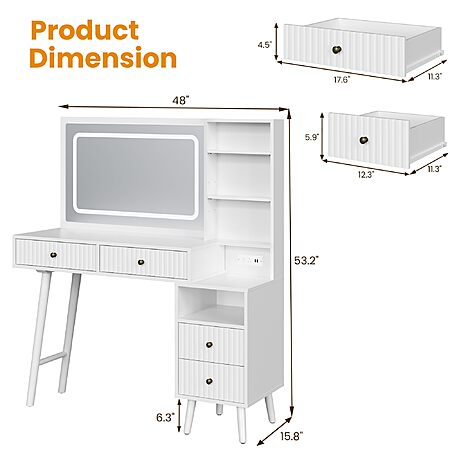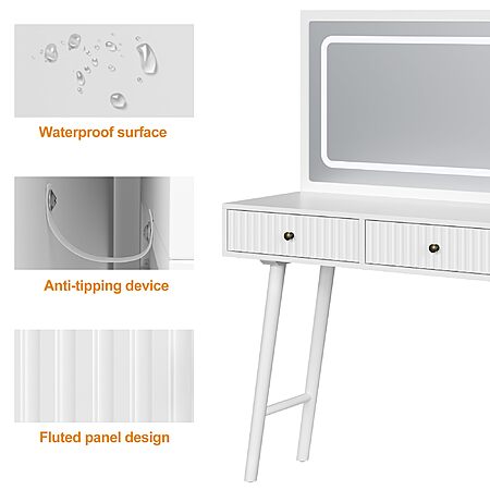 RoyalCraft 48" Fluted Makeup Vanity Desk w/ 34" Mirror, Lights & Charging Station (White) $116 + Free Shipping