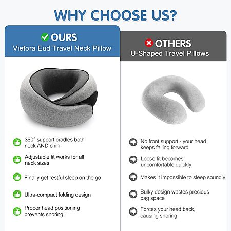 [AC]$9.99*: Vietora Eud Ergonomic Travel Neck Pillow w/ Memory Foam Support(with Eye Mask, Earplug Holder & Carry Bag)