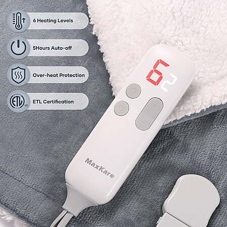 Maxkare Electric Throw Blanket 50" x 60" with 6 Heating Levels & 5 Timer Settings ETL Certification, Flannel & Sherpa, Gray & White $24.79