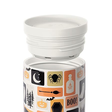 16-Oz Simple Modern Halloween Signature Voyager Travel Coffee Mug Tumbler w/ 360° Lid (Spooky Stamps on Cream) & More for