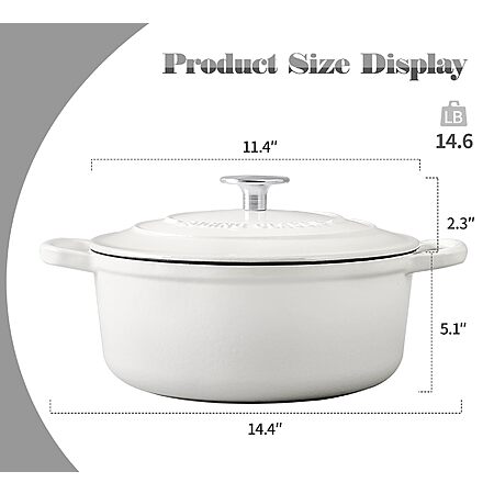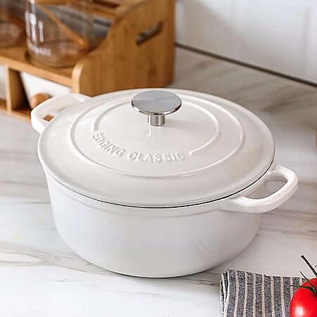 EDGING CASTING Cast Iron Dutch Oven With Lid Round Pot Enameled Covered for Bread Baking, 7 Quart, White $56.8