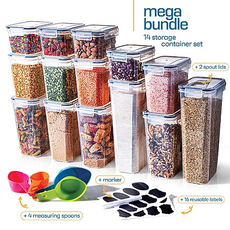 Model: Storeganize Airtight Food Storage Containers With Lids 14pc, Kitchen Storage Containers WITH INGENIOUSLY DESIGNED LIDS, Tall Pasta Kitchen Canisters & Pantry Organizers and Storage