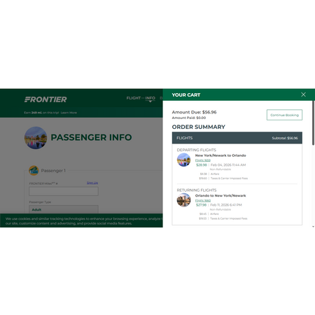 Round Trip New York / New Jersey - Orlando FL or Vice Versa $58 Nonstop Airfares on Frontier Airlines BE (Limited Dates February - March 2026)