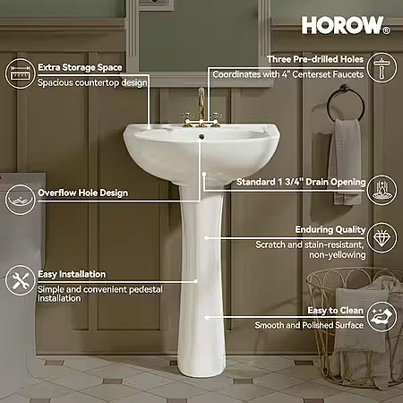 18.90" D Round Ceramic Pedestal Combo Single Bowl Bathroom Sink w/ Overflow Drain (White) $149 + Free Shipping