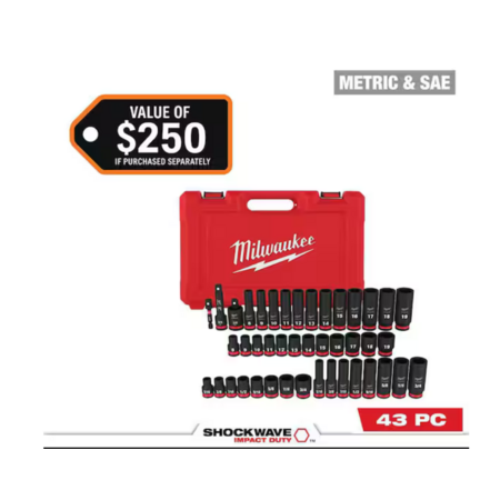 Select Stores: 43-Pc Milwaukee Shockwave 3/8" SAE/Metric 6 Point Impact Socket Set