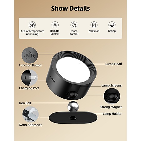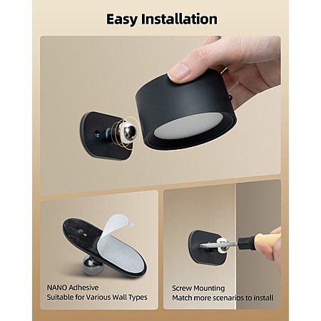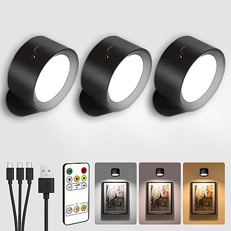 3-Pk AMETHEUS Rechargeable LED Cordless Wall Mounted Lights w/ Remote & Touch Control, 3 Color Temps, 360° Rotation (Black) $16.19 + FS w/ Prime