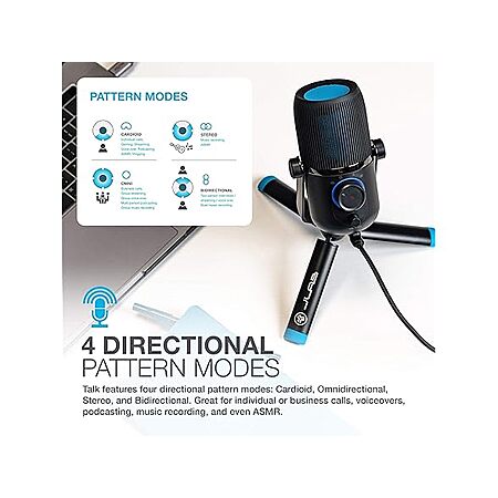 - 4 Directional Pattern Modes: Choose from Cardioid, Omnidirectional, Stereo, and Bidirectional modes for podcasts, gaming, voiceovers, and more.