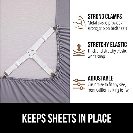 4-Pack GORILLA GRIP Adjustable Elastic Bed Sheet Holders w/ Metal Clips $8.99 + Free Shipping w/ Prime or on $35+