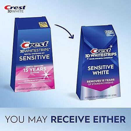 [S&S, AC] $20.49 | 18-Count Crest 3D Whitestrips Sensitive At-home Teeth Whitening Kit at Amazon