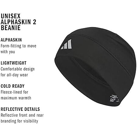 $12.59 | adidas Alphaskin 2 Beanie Black/Silver Reflective One Size at Amazon
