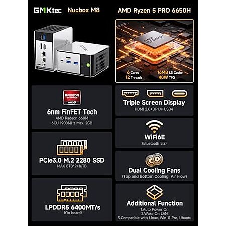 [AC] $370.48* | GMKtec Mini PC AMD Ryzen 5 PRO 6650H (6C/12T 4.50Ghz) 16GB DDR5 1TB NVME SSD at Amazon