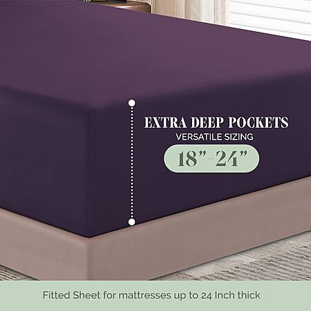 Elegant Comfort 1500 Premium Hotel Quality 18-24 Inches Deep - Extra Deep Pocket Single Fitted Sheet for High Mattress, Luxury and Softest, Queen, Purple $9.60 +FS w/Prime