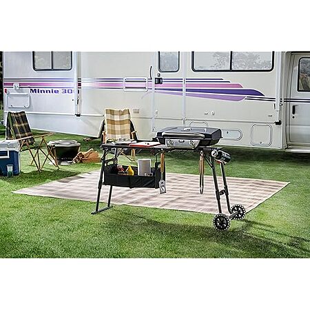 - STORAGE TOTE: Includes a removable storage tote for your condiments and other grilling essentials. Folds away with the grill for easy transport.