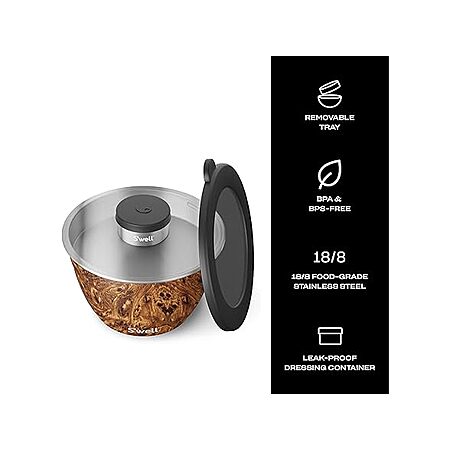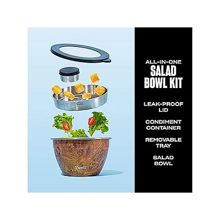 64-Oz S’well Leakproof Stainless Steel Salad Bowl Kit w/ 2oz Condiment Container and Removable Tray (Teakwood Finish) $20.00 + Free Shipping w/ Prime
