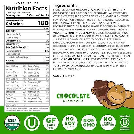 Model: Orgain Organic Kids Protein Nutritional Shake, Chocolate - 8g of Protein, 22 Vitamins & Minerals, Fruits & Vegetables, Gluten Free, Soy Free, Non-GMO, 8.25 Fl Oz (Pack of 12)