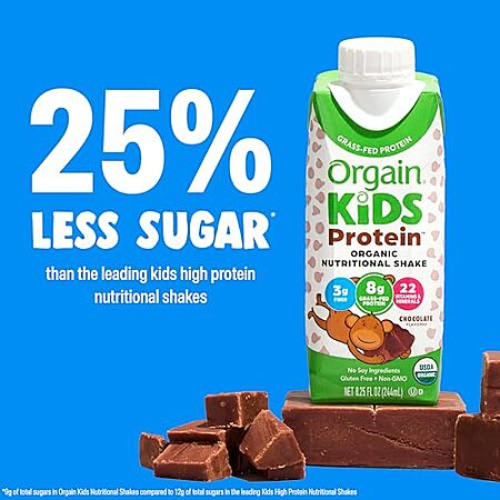 Amazon[amazon.com] has 12-Pack 8.25-Oz Orgain Organic Kids Protein Nutritional Shakes (Chocolate) for $21.28 - $18.08 - 30% when you 'clip' coupons on product page - 5% when you check out via Subscribe & Save = $10.64. Shipping is free with Prime or on $35+ orders.