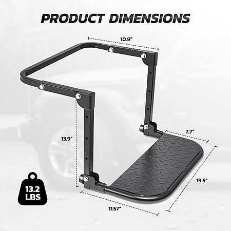 - UNIVERSAL TIRE STEP - Folding heavy-duty tire step fits any tires from 9"-13" wide; strong and stable step support up to 330 lbs; designed for use with Most of truck, SUV, and RVs.