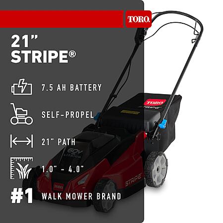 Toro Stripe 21-in 60-volt, Self-Propelled Battery Walk Mower with (1) 7.5ah Battery Included | 21623 $99