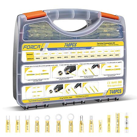 740Pcs FORCA Yellow Heat Shrink Wire Connectors Kit (13 types 10-12awg) $17 @ Amazon
