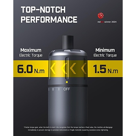 • Top-Notch Performance: The 220 RPM Magnastrom motor offers 3 torque settings (1.5N.m, 3N.m, 6N.m), with a maximum hard torque of 6N.m. Ideal for assembling furniture, gaming PCs, and more.