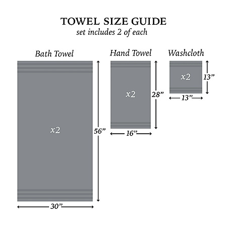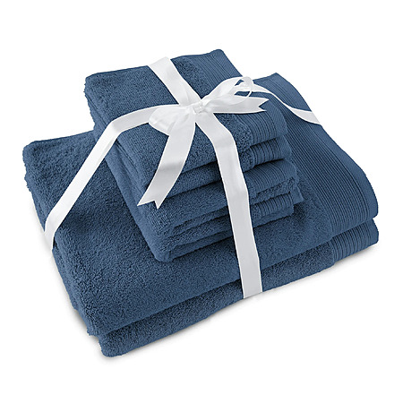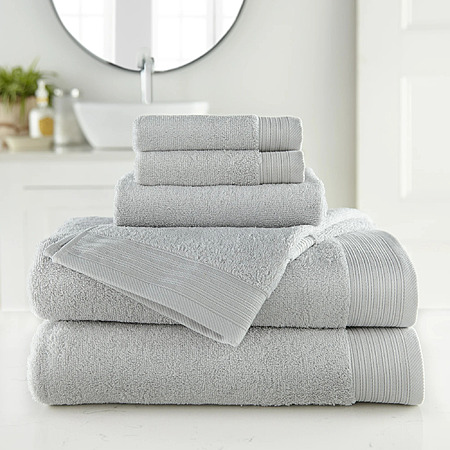 Note: 6-piece set includes 2 bath towels (30x56), 2 hand towels (16x28), and 2 washcloths (13x13). 100% organic cotton. Gray is $7.99. Blue, silver, and white are $9.99 at the time of post. Availability may change. - gray is OOS