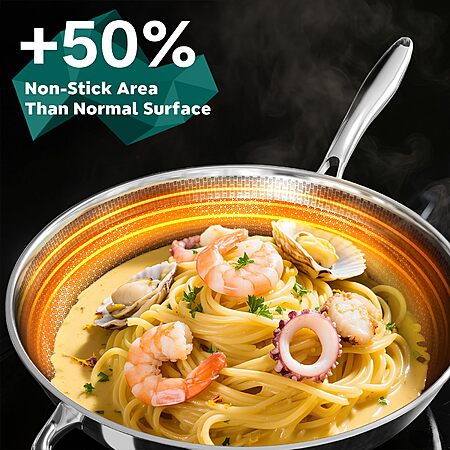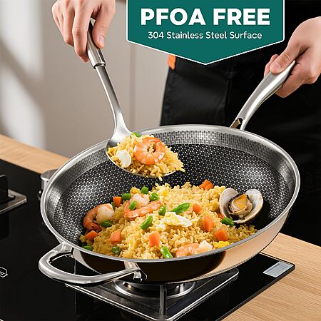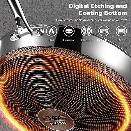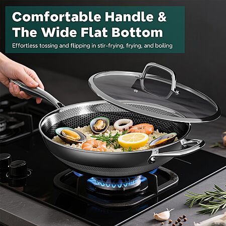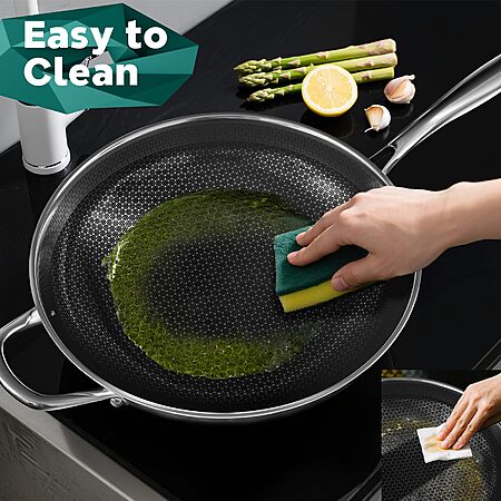 Wok Pan, 13-Inch Stainless Steel Woks & Stir-Fry Pans Nonstick, Wok Pan with Lid for Induction, Electric, Gas, Halogen, All Stoves $31.34