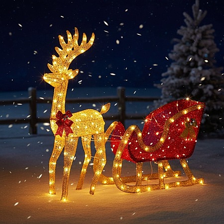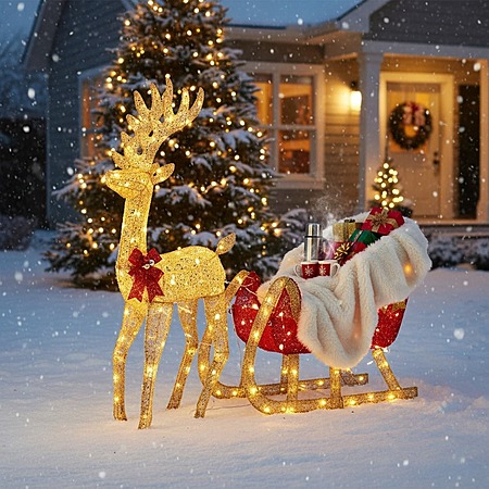 Cozy Haven via Walmart[walmart.com] has 4' MCQ Lighted Reindeer w/ Sleigh 180-LED Outdoor Christmas Yard Decoration on sale for $35.99. Shipping is free.
