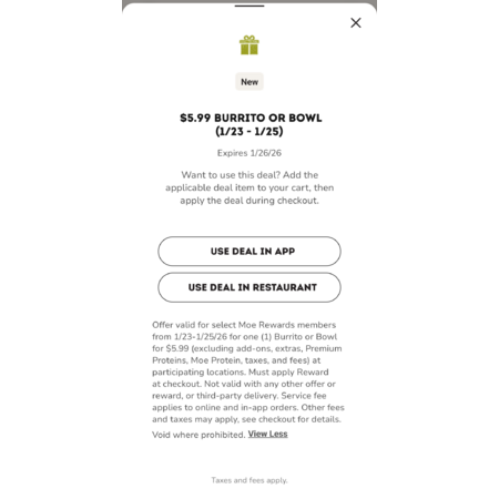 Moe's Southwest Grill: For Select Members, Burrito or Bowl for $5.99 (1/23-1/25) YMMV