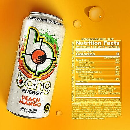 [S&S, AC] $14.65* | 12-Pack 16-Oz BANG Energy Drink (Peach Mango) at Amazon