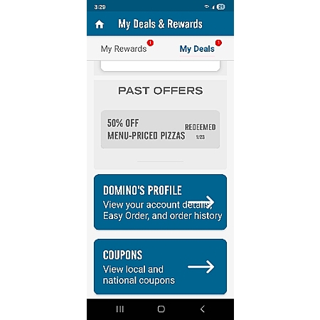 I got this too. Opened the Dominoes app, it demanded an update. In the 'my deals' section, it says if i make an order of $7.99 or higher, then they will give me a %50 off type reward on my next order.