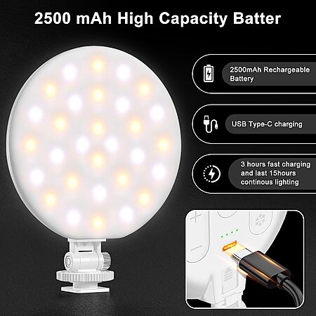 - 2500mAh Large Capacity Battery: 2-15 hours of use with a 3-hour charge time, Type-C port for simultaneous charging and use during extended shoots.