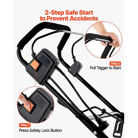 - Dual Safety Switch: To start the winter snow blower, press the safety lock button before pulling the trigger—an added layer of safety to help avoid accidental activation, especially with winter gloves on.