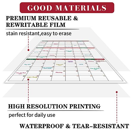 - Premium Dry Erase Surface: Stain-resistant, easy to clean, and compatible with all dry erase markers.